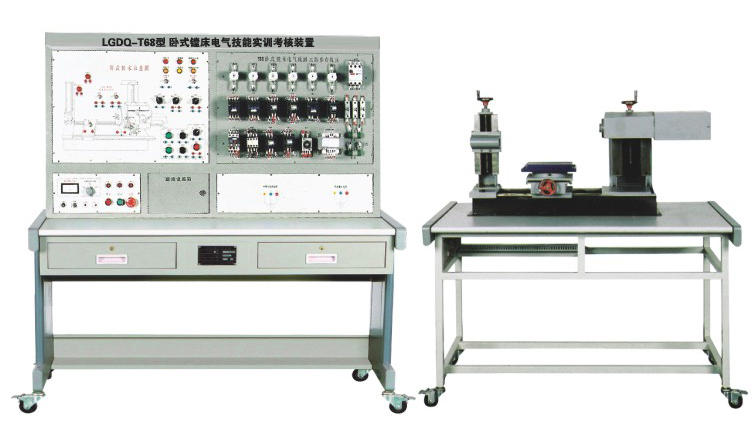 TYK-T68 臥式鏜床電氣技能實(shí)訓(xùn)考核裝置(半實(shí)物)由電源控制部分、機(jī)床電氣控制部分、半仿真機(jī)床實(shí)物部分構(gòu)成。電源控制部分包括實(shí)訓(xùn)定時(shí)、定時(shí)報(bào)警、安全用電自動(dòng)控制等,機(jī)床電氣控制部分把整臺(tái)機(jī)床內(nèi)部電器裝在正面面板上,能直觀地觀察機(jī)床工作時(shí)各電器的動(dòng)作狀況。故障點(diǎn)在面板上設(shè)有相應(yīng)測(cè)試點(diǎn),供實(shí)訓(xùn)考核者測(cè)試用。仿真機(jī)床部分能模擬機(jī)床各種運(yùn)動(dòng)。通過(guò)臥式鏜床電氣技能實(shí)訓(xùn)考核裝置的實(shí)訓(xùn)能使學(xué)員掌握機(jī)床常見(jiàn)故障的現(xiàn)象、故障產(chǎn)生的大概部位,熟練掌握機(jī)床電路工作原理,其是維修電工初、中、高級(jí)技能鑒定的理想實(shí)訓(xùn)設(shè)備。