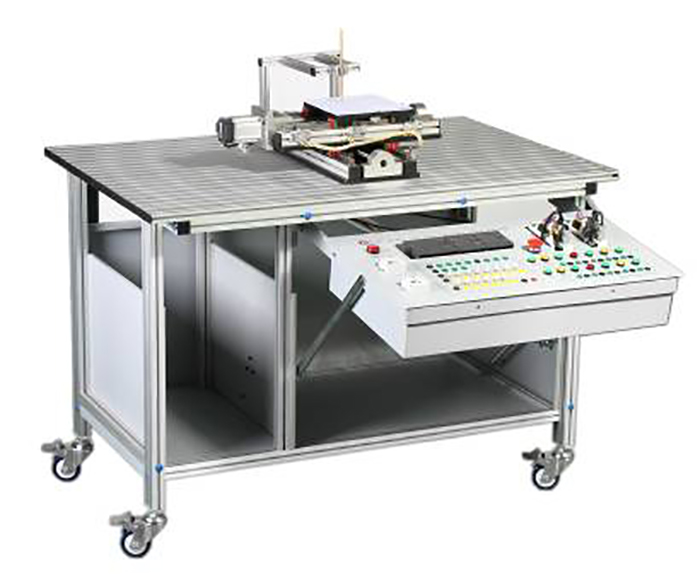 本設備主要由底板、伺服電機及伺服放大器、高精度絲桿傳動機構、托板、限位傳感器組件、鋁合金導軌式支架及PLC控制系統(tǒng)等組成。它是一種將PLC、交流伺服電機調(diào)速、傳感器應用、位置控制、復雜的開關量控制、時序邏輯控制有機結合成一體的教學裝置。