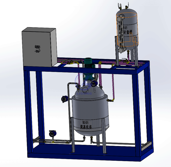 整套裝置由鋼制安裝框架、反應(yīng)器、冷凝器、仿真儀表、就地計算機(jī)操作臺、、就地智能儀表控制上位監(jiān)控軟件、外置配套設(shè)備等組成,工藝路線簡潔清晰,現(xiàn)場儀表與通訊模塊有機(jī)結(jié)合,上位計算機(jī)控制,設(shè)置DCS界面及自動評分系統(tǒng)。