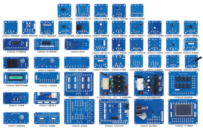 本設(shè)備是將實際應(yīng)用中單元電路模塊化。學(xué)生通過模塊間的搭接,很方便就能搭建成各種實際產(chǎn)品,模塊搭成產(chǎn)品的范圍涉及家電,工業(yè),無線等方面內(nèi)容。單元模塊電路包括傳感器,信號處理,顯示,執(zhí)行本體,接口電路,微處理器、通信等模塊。模塊都采用透明盒裝配,模塊間采用排插和接線柱連接,使實訓(xùn)模塊能夠靈活按教學(xué)要求或競賽要求搭建成各種實際產(chǎn)品。