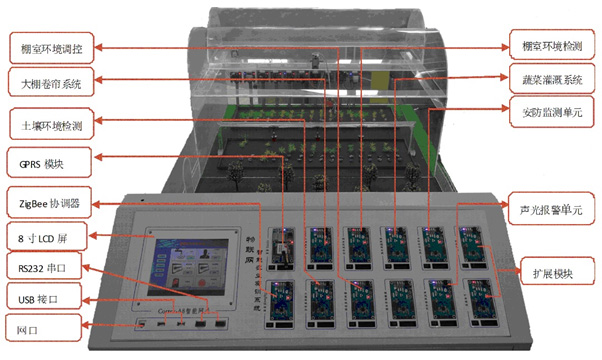 ? ? ? ? 物聯(lián)網(wǎng)農(nóng)業(yè)教學(xué)實(shí)訓(xùn)系統(tǒng)以高性能低功耗的網(wǎng)關(guān)控制器為核心,結(jié)合ZigBee無線傳感網(wǎng)及控制技術(shù),對系統(tǒng)中的農(nóng)作物生長過程中涉及的多種環(huán)境因素進(jìn)行檢測和處理,并智能的對各種突發(fā)、惡劣情況進(jìn)行實(shí)時處理,極大的節(jié)省了人力物力,保護(hù)生態(tài)環(huán)境,提高經(jīng)濟(jì)效益。