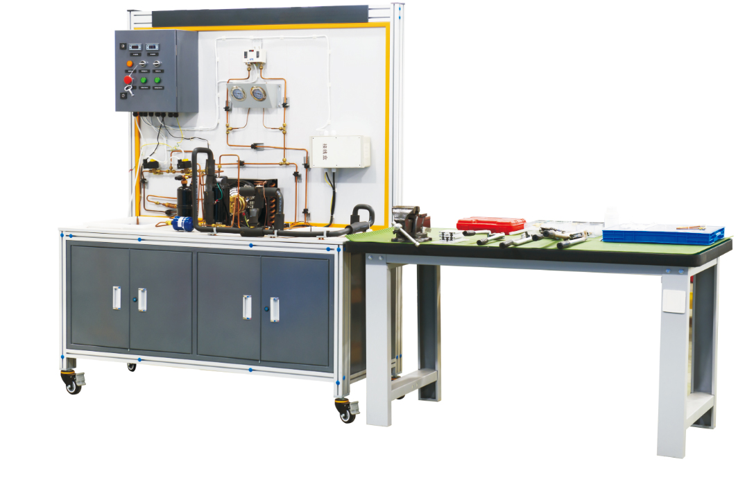 該裝置基于世界技能大賽的基本要求,著重提高學(xué)員的職業(yè)素養(yǎng),提供一個實(shí)訓(xùn)平臺,由學(xué)生進(jìn)行制冷系統(tǒng)的基本設(shè)計、安裝、調(diào)試及維修等實(shí)訓(xùn)。該裝置能全面的實(shí)訓(xùn)學(xué)生的綜合能力,其技能包括:系統(tǒng)設(shè)計技能,管工技能,焊工技能,電工技能,壓力測試、抽真空、真空測試、制冷劑測試及加注、電氣測試技能、制冷設(shè)備調(diào)試技能。還包括了制冷系統(tǒng)調(diào)試運(yùn)行的全部步驟,能滿足實(shí)訓(xùn)教學(xué)、實(shí)際工程訓(xùn)練及職業(yè)技能競賽的要求。