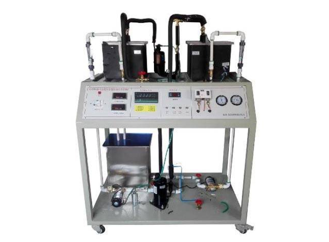 TYK-ZZL01型 蒸汽壓縮式制冷循環(huán)實(shí)訓(xùn)裝置采用鈑金噴塑構(gòu)造由框架和演示板構(gòu)成,關(guān)鍵配置有兩部變頻風(fēng)機(jī)、整流器風(fēng)管、熱交換器、壓縮機(jī)、冷卻器、空調(diào)蒸發(fā)器及四通換向閥、供熱彭脹閥、循環(huán)泵、過(guò)濾裝置、截止閥、逆止閥、玻璃轉(zhuǎn)子流量計(jì)、螺旋式風(fēng)機(jī)盤管及管路構(gòu)成等。