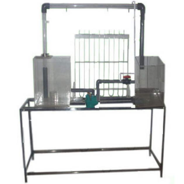 虹吸管、水泵、高位水箱、低位水箱、測壓管、刻度標(biāo)尺、抽氣裝置、閥門、自循環(huán)裝置、不銹鋼框架。