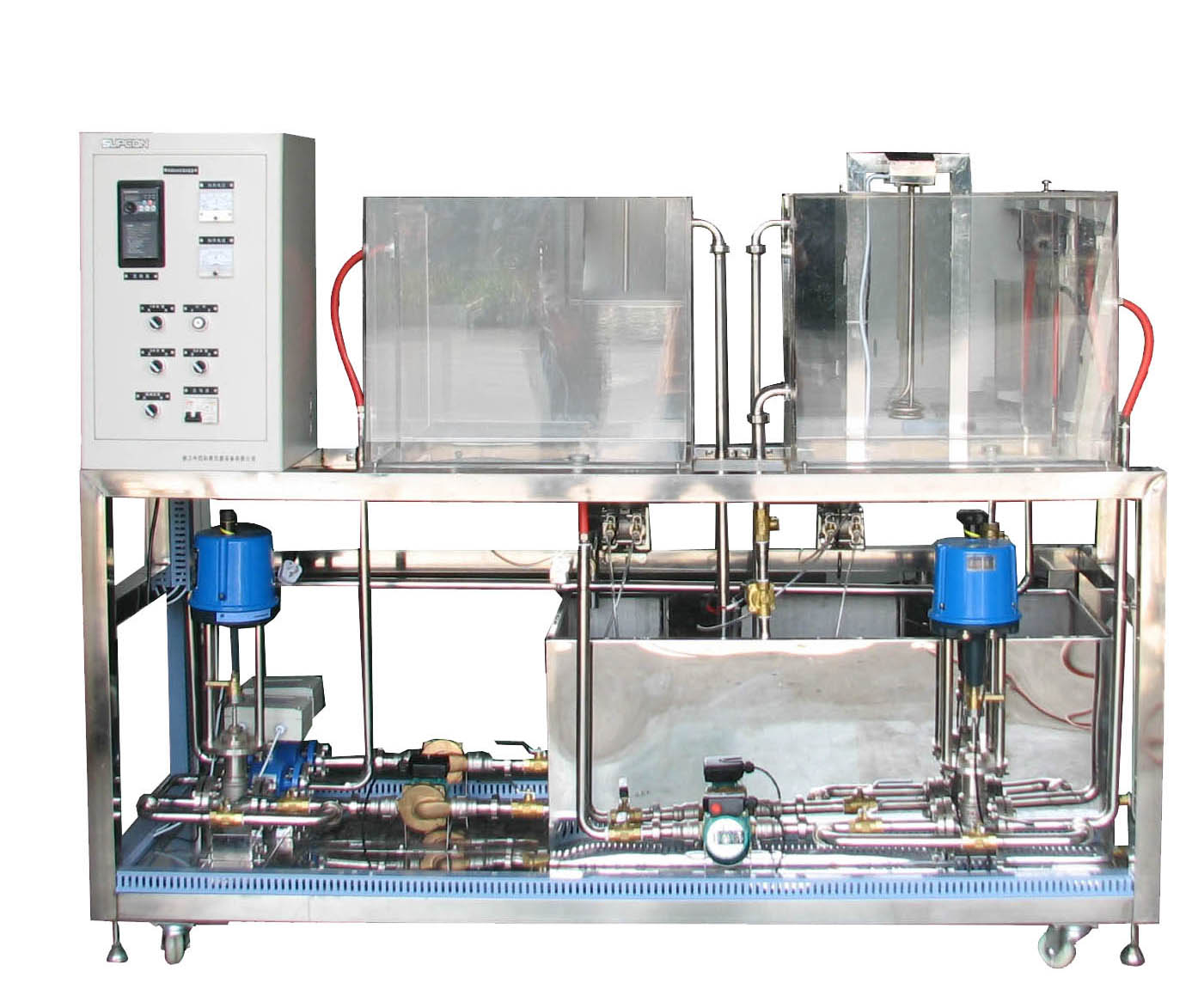1.機械主體設備:設備整體框架、加熱水箱、液位水箱、水槽、工業(yè)管路、儀表控制臺。