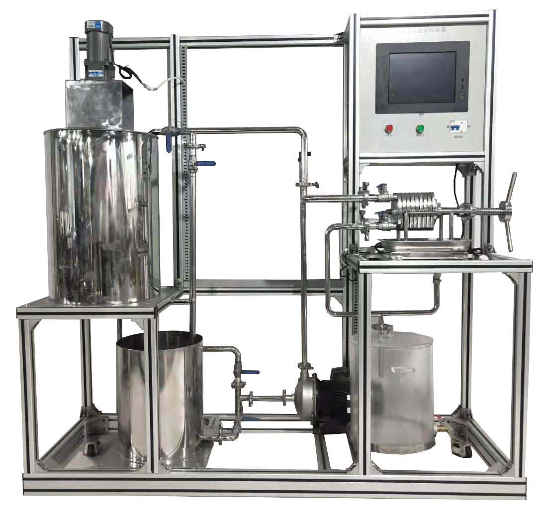 4、該實驗裝置是由過濾板、過濾框組成的小型工業(yè)用不銹鋼板框過濾機,能完整地體現了板框壓濾機的構造和操作流程,采用氣動配料、氣動攪拌加壓技術,用空氣將物料注入過濾機,工程化概念強。