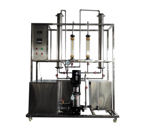 一、反滲透膜分離實驗裝置功能 1.加深對組成反滲透工藝流程各個處理單元構(gòu)造的了解。?? 2.掌握反滲透工藝流程各單元操作方法及沖洗方法。 3.熟悉各單元的作用,了解其水質(zhì)變化及設(shè)計參數(shù)。 二、反滲透膜分離實驗裝置主要配置 活性炭過濾器、保安過濾器、反滲透卷式膜組件、反滲透不銹鋼外殼、不銹鋼高壓泵 、流量計、純水電導(dǎo)率儀 、原水箱、純水箱、閥門、壓力表、電器控制系統(tǒng)、不銹鋼框架。 三、公用設(shè)施 1.水:裝置自帶水箱,連接自來水。實驗時由水箱循環(huán)泵送入系統(tǒng),循環(huán)使用。 2.電:電壓AC380V,功率1KW,標(biāo)準(zhǔn)三相四線制。每個實驗室需配置1~2個接地點(安全地及信號地)。 3.實驗物料:自來水或聚乙二醇,外配設(shè)備:分光光度計 四、技術(shù)參數(shù) 1.反滲透膜為卷式膜,膜直徑:φ100mm;長度:1014mm;脫鹽率:95%;帶有不銹鋼膜殼,*大壓力:4.16MPa。 2.預(yù)過濾器:10英寸活性炭預(yù)過濾和5μm精過濾。 3.保安過濾器:線繞式芯+不銹鋼外殼,出水量16-160L/h。 4.不銹鋼多級立式高壓離心泵,功率:0.75KW,流量:2m3/h,揚程80m。 5.液體流量計:規(guī)格10...