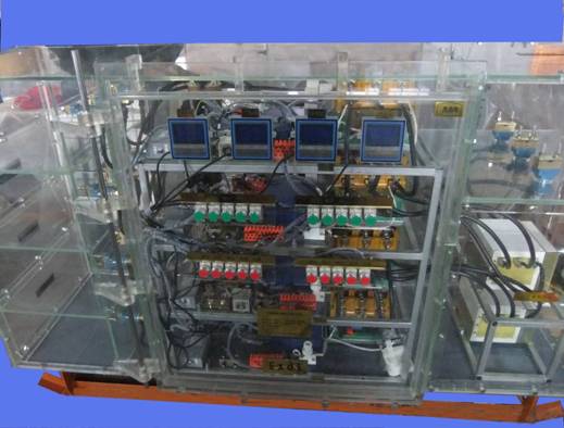 ? ? 在實驗室可直接用380V便可以演示整個礦用隔爆兼本質(zhì)安全型組合開關(guān)的控制回路,還可以和礦下一樣實現(xiàn)合分閘的功能。
