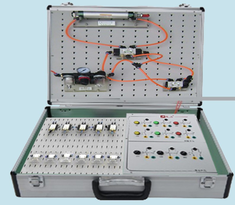 本實(shí)訓(xùn)箱主要由鋁合金機(jī)箱、各種小型標(biāo)準(zhǔn)工業(yè)氣動(dòng)元件、電氣控制部分、等組成,結(jié)構(gòu)緊湊、輕便實(shí)用。學(xué)生可自主搭接氣動(dòng)回路和電氣控制回路。能開(kāi)設(shè)氣動(dòng)元件和電氣元件的識(shí)別、壓力控制回路、方向控制回路、速度控制回路、順序動(dòng)作回路等實(shí)訓(xùn)項(xiàng)目??蓭нM(jìn)教室作演示實(shí)驗(yàn),適合職業(yè)院校液壓與氣動(dòng)傳動(dòng)技術(shù)等課程的實(shí)訓(xùn)教學(xué)需要.