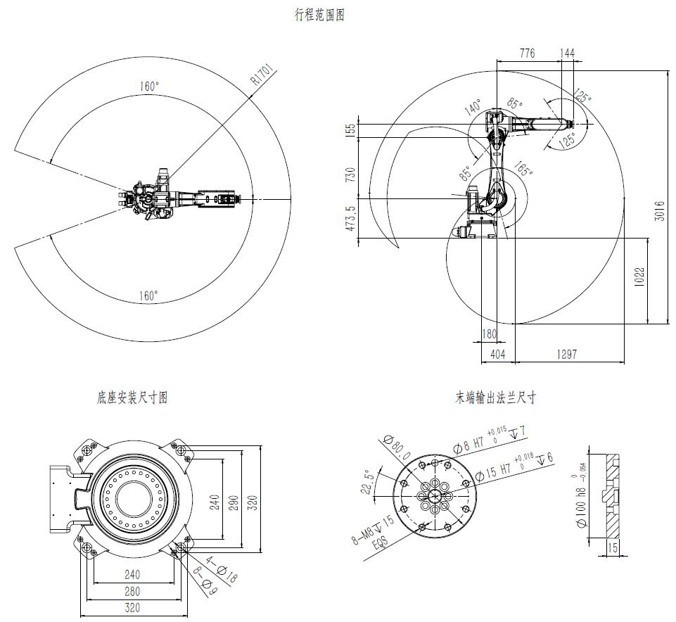 | 運動范圍 | J1 | ±160° |