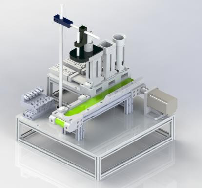 2、自動(dòng)上料模塊:該模塊由料倉(cāng)、氣缸、傳送帶、視覺(jué)、定位臺(tái)組成。自動(dòng)上料機(jī)可以上三種形狀(圓形、方形、矩形)的物料,每種物料又分兩種顏色(藍(lán)色、紅色),選手通過(guò)視覺(jué)系統(tǒng)識(shí)別物料形狀與顏色來(lái)分類(lèi)物料。