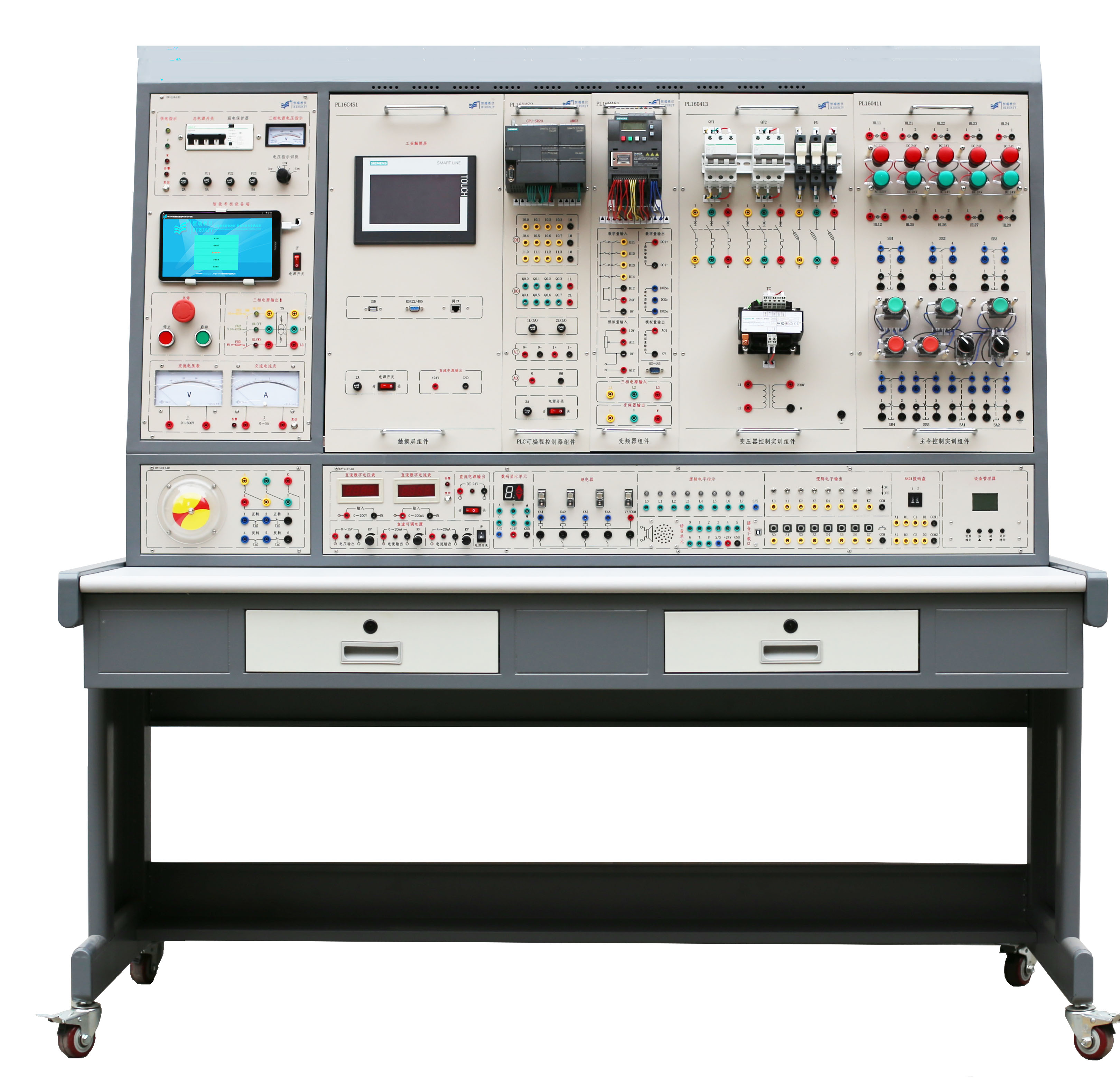 一、概述 ? ? 本裝置是根據(jù)勞動和社會保障部頒發(fā)的考核培訓技能內容所列出的電氣控制線路而研發(fā)的裝置,通過本實訓考核裝置的操作,能使學生的操作技能得到很好的鍛煉與提高。該實訓裝置不僅可供學生實訓操作用,也是電工技能考核的一個理想設備。 二、技術參數(shù) 1.?輸入電源:三相四線~380V±10% 50Hz 2.?工作環(huán)境:環(huán)境溫度范圍為-5℃~+40℃相對濕度<85%(25℃)海拔<4000m 3.?裝置容量:<3kVA 4.?外形尺寸:1640mm×805mm×1660mm 三、配置及功能 1、控制實驗臺配置 裝置/系統(tǒng)配置 序號 部件名稱 技術描述 數(shù)量 1? 控制屏/實訓桌 1.控制屏材料采用鐵質材料,表面處理采用雙層亞光密紋噴塑技術,鋁質面板。 2.功能面板采用鋁質面板,鋁質面板采用凹字爛板技術。 3.實訓桌為鐵質雙層亞光密紋噴塑結構,桌面為防火、防水、耐磨高密度板、結構堅固,造型美觀大方。 4.桌子下面配置帶有抽屜(帶鎖),用于放置實訓資料等。 1套 2? 總電源/交流電源模塊 總電源:配置電源通過啟、停按鈕控制電源的輸出,并配置急停按鈕。 監(jiān)控儀表:配置一只0~450V指針式...